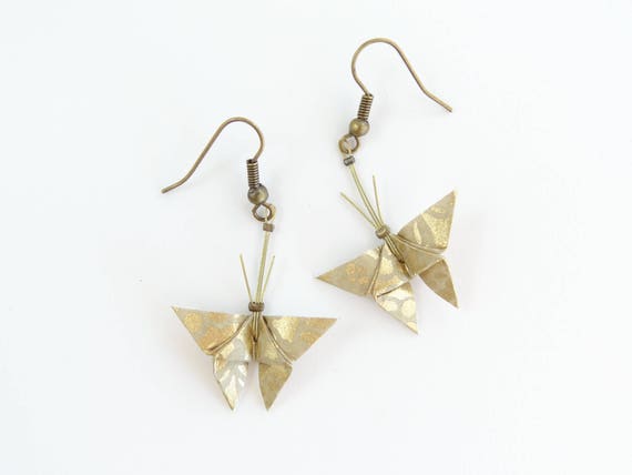 Jewelry Origami Butterfly Origami Earrings Japanese Washi Gold Etsy