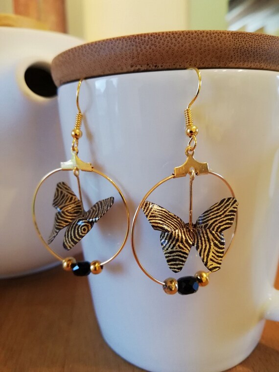 Butterfly Origami Creole Black And Gold Butterfly Earrings Etsy