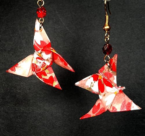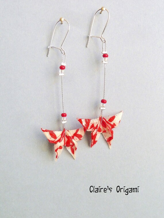 Red And White Butterfly Origami Earrings In Folded Etsy