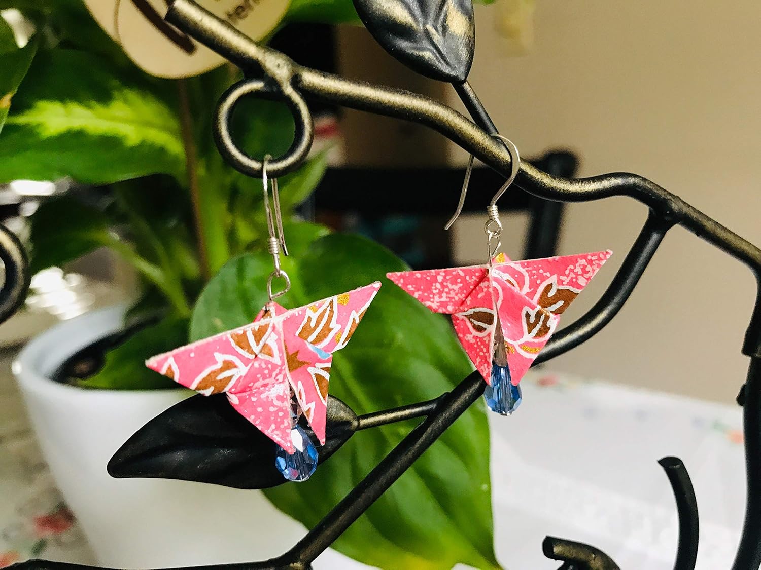 Amazon Com Pink Butterfly Origami Earrings Handmade