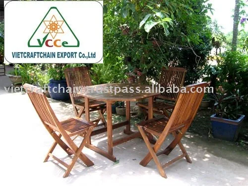 Teak Garden Furniture Set With Folding Chairs And Hexagonal Table