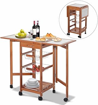Amazon Com Wooden Folding Kitchen Trolley Drop Leaf Kitchen Cart
