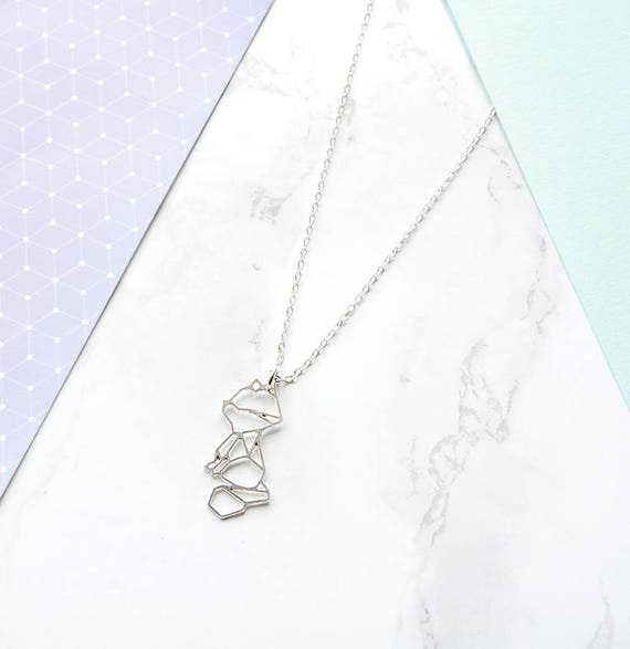 Fox Origami Necklace Geometric Fox Necklace Silver Fox Tiny Etsy