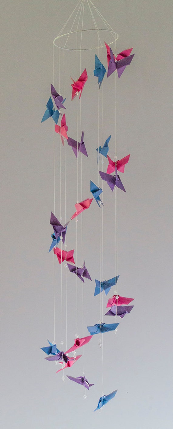 Origami Butterfly Spiral Mobile In 3 Colors Pink Purple Etsy