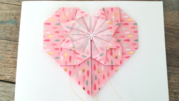 Heart Origami Card Origami Tissue Paper Heart Card Etsy