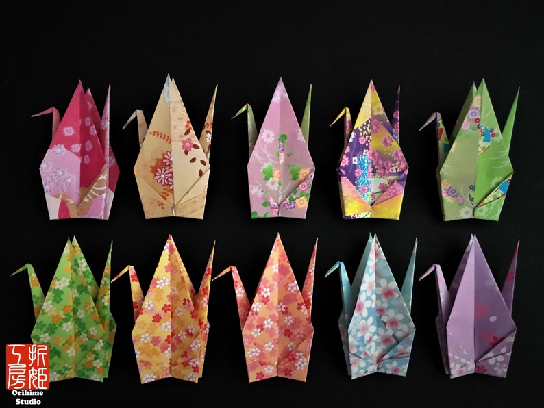 10 Origami Cranes Assorted Japanese Origami Paper Paper Etsy