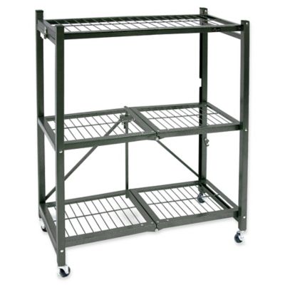 Origami 3 Shelf Foldable Wheeled Storage Rack In Pewter Bed Bath