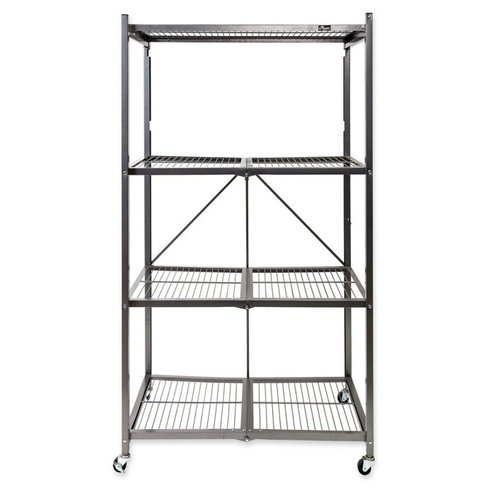Origami 4 Shelf Foldable Wheeled Storage Rack In Pewter Bed Bath