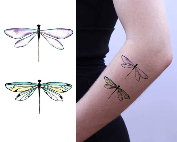 Watercolor Dragonfly 2 Temporary Tattoo Set Of 2 Sheets Etsy