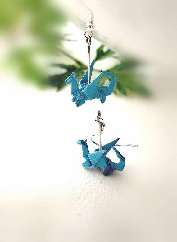 Origami Dinosaur Earrings Origami Earring Cute Dinosaur Etsy