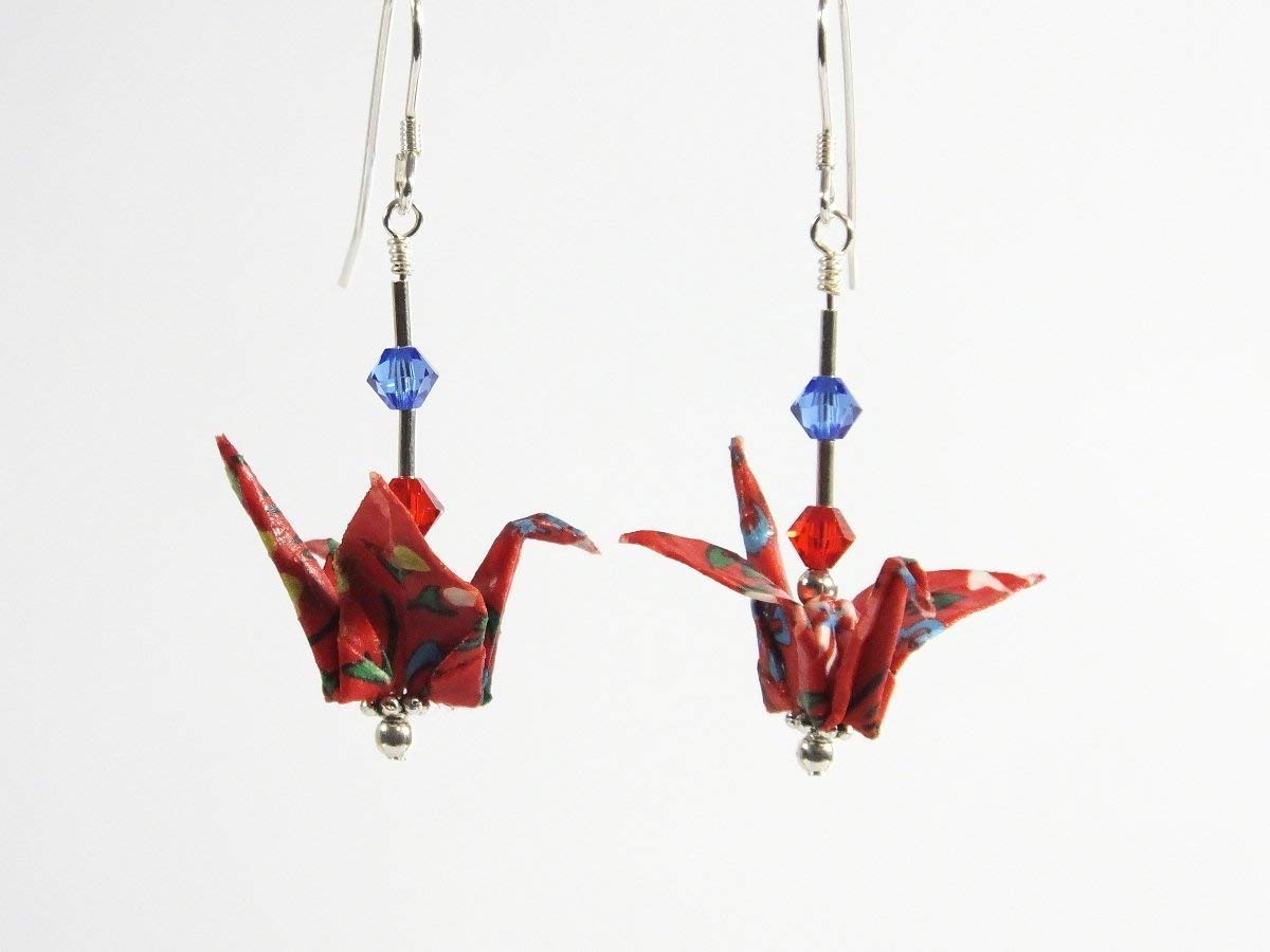 Amazon Com Blue And Red Origami Crane Earring Handmade