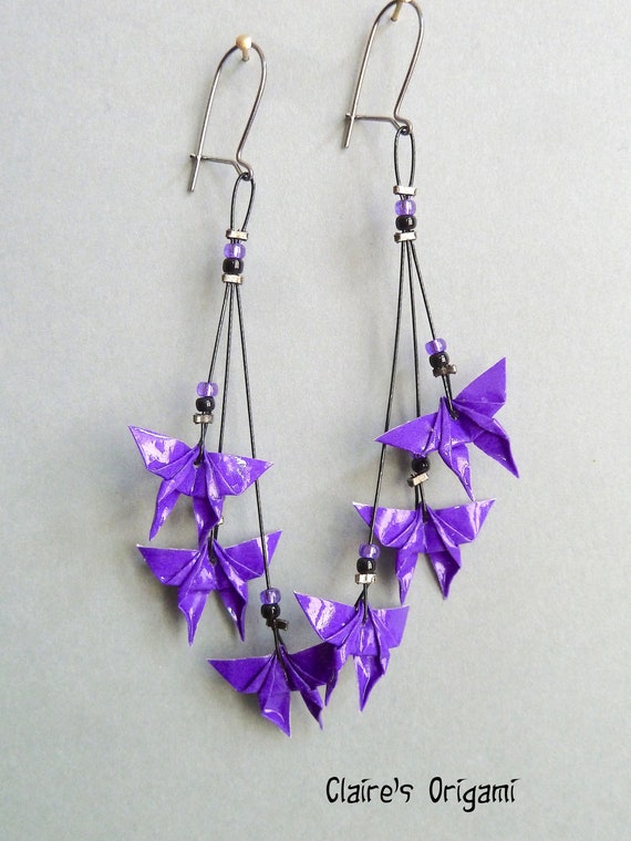 3 Purple Butterflies Origami Earrings In Folded Japanese Etsy