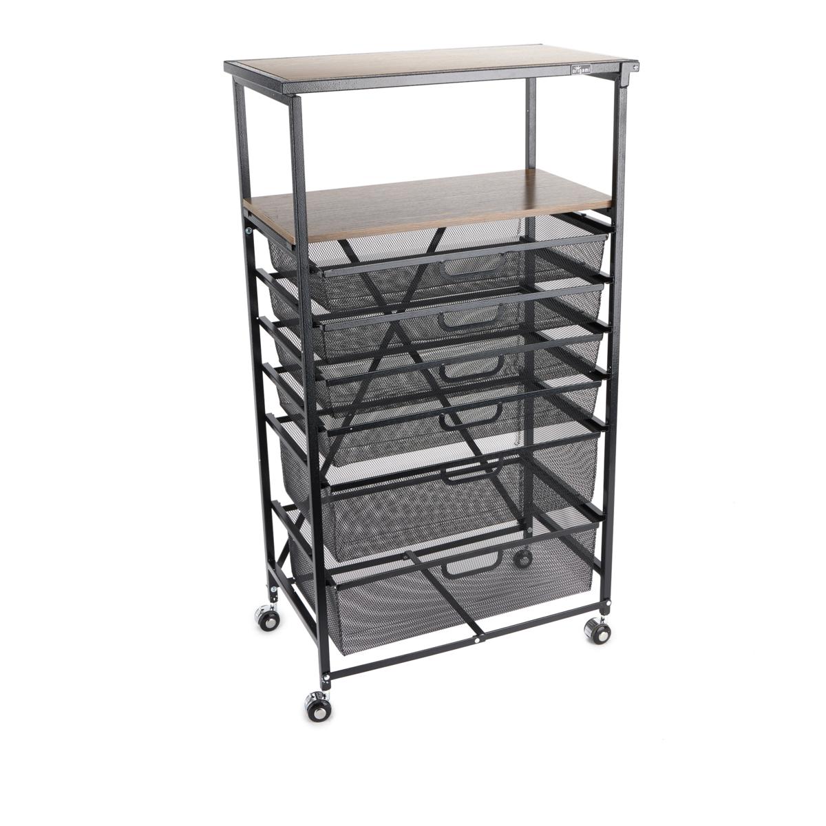Origami Folding Steel 5 Drawer Mesh Storage Kitchen Cart Wood Top