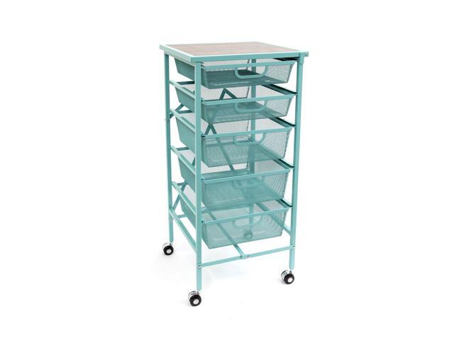 Origami Folding Steel 5 Drawer Mesh Storage Kitchen Cart Wood Top