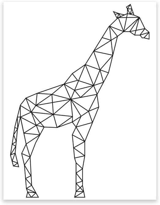 Giraffe Geometric Animal Origami Wall Art Black White Minimalist