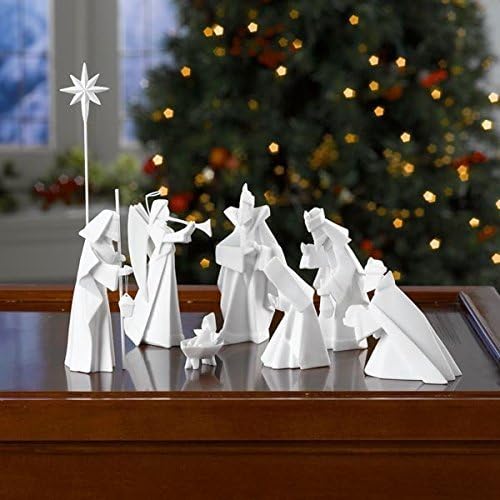 Each porcelain pieces is shaped to resemble origami in this deluxe nativity set. Porcelain origami 15 piece nativity set with animals and backdrop. 5 0 out of 5 stars 8. The porcelain origami nativity stable is sold separately.