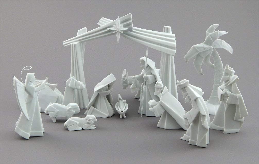One hundred 80 degrees origami porcelain angel statues 7 5 and 8 5 inches tall set of 2. Porcelain origami 15 piece nativity set with animals and backdrop. Its simplicity and unique origami like form has made it a timeless classic. Porcelain origami 14 piece nativity set with animals.