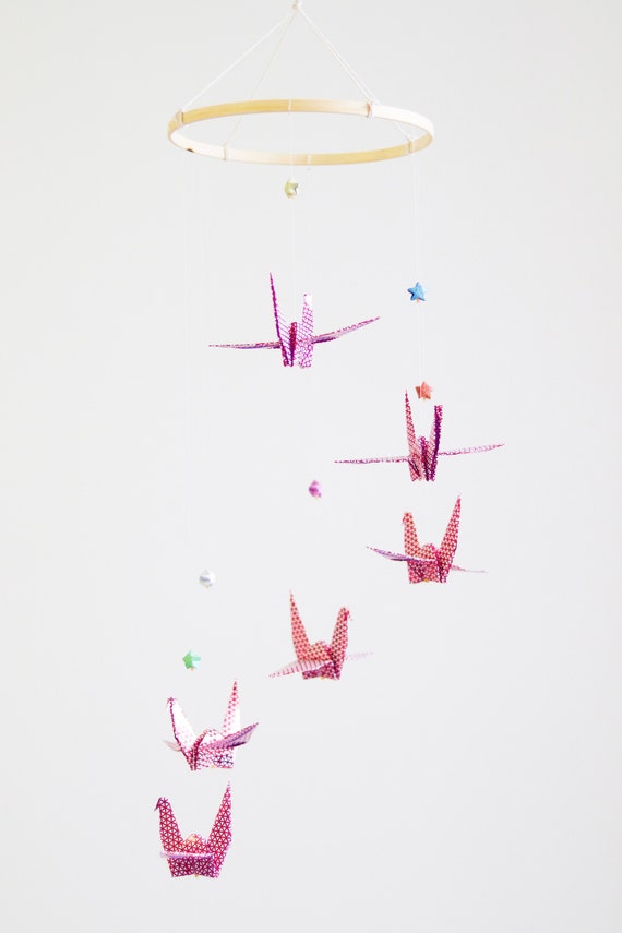 Hanging Baby Origami Paper Cranes String Children Spiral Bird Etsy