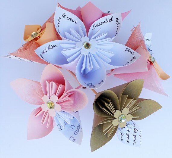 Origami Paper Flower Bouquet In Pink And Cream Made To Order