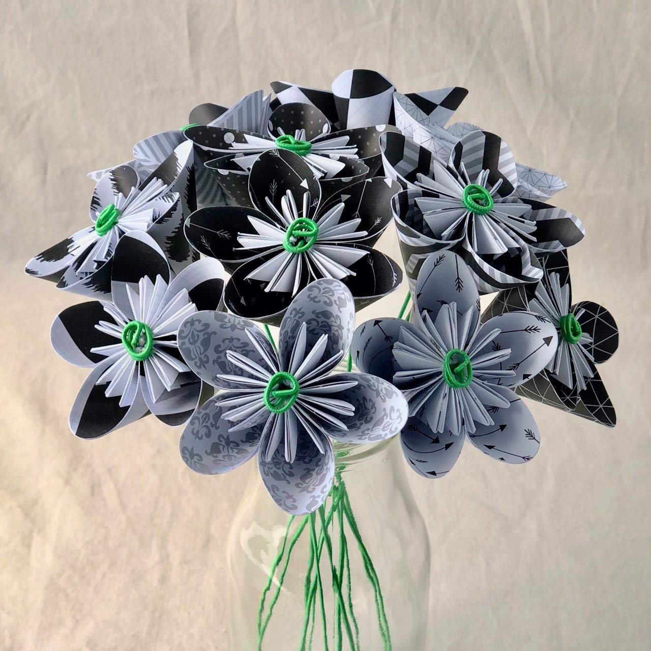 Amazon Com Black And White Origami Paper Flower Bouquet Handmade