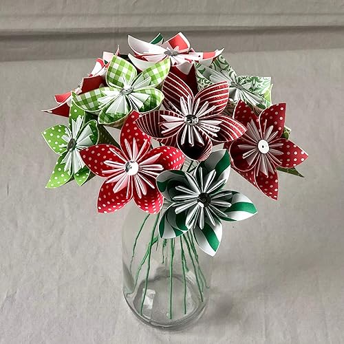 Amazon Com Christmas Themed Origami Paper Flower Bouquet Handmade