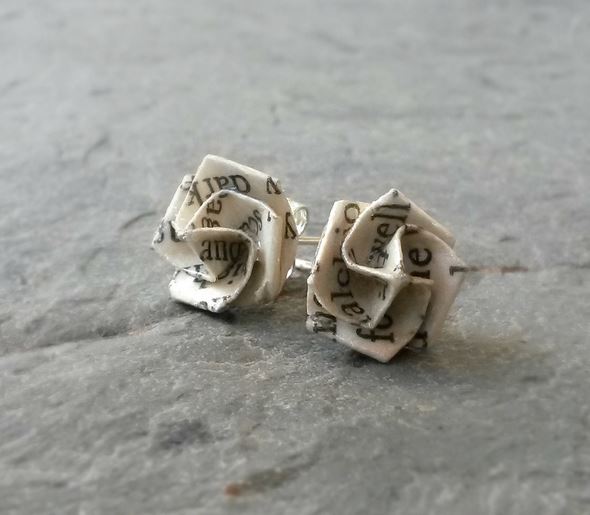 Origami Rose Earrings Literary Sold By Stc Handmade On Storenvy