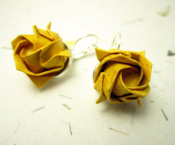 Origami Earrings Paper Rose Earrings Yellow Roses Asian Etsy