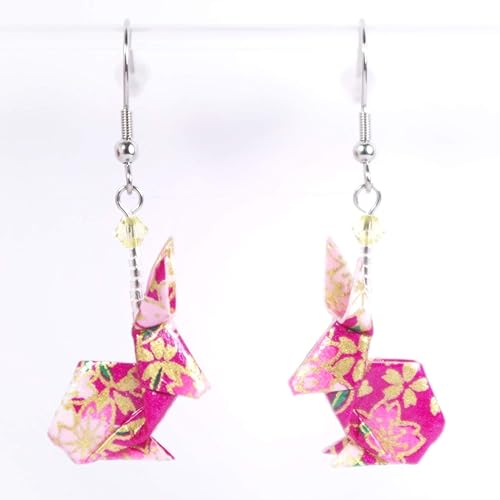 Amazon Com Origami Rose Rabbit Earrings Stainless Steel Handmade