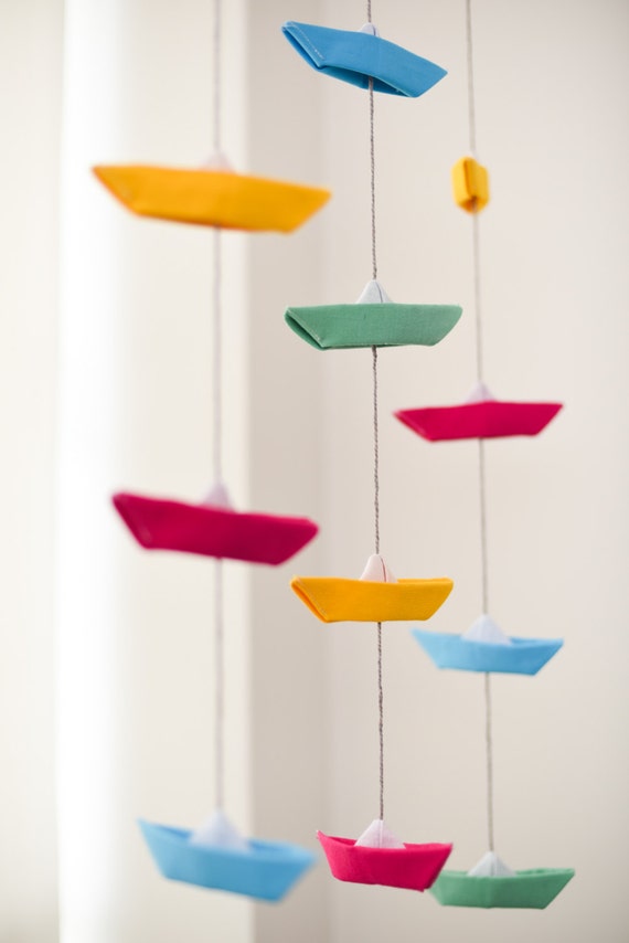 Wall Hanging Origami Boat Fabric Origami Wall Art Nautical Etsy