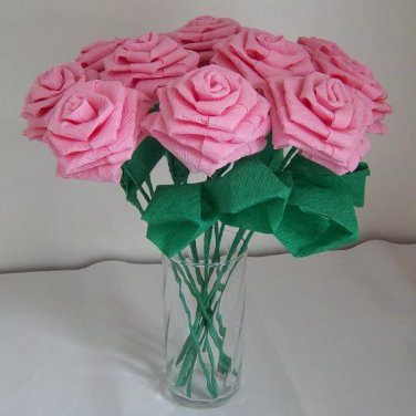Handmade Origami Crinkle Paper Roses 12 Pink