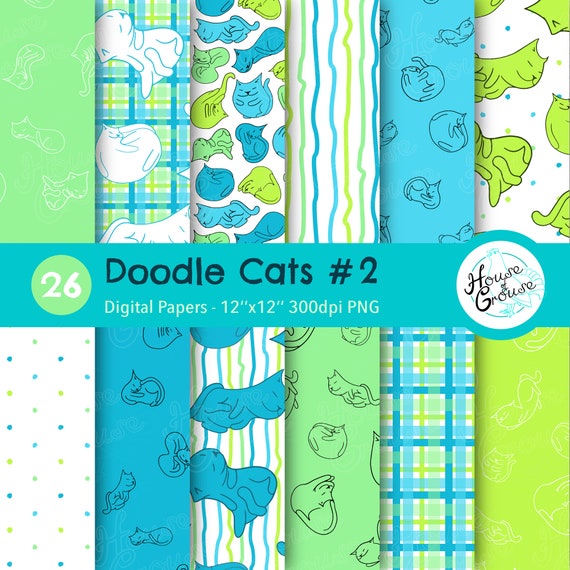 Kawaii Green Digital Paper Cute Cats Printable Origami Etsy