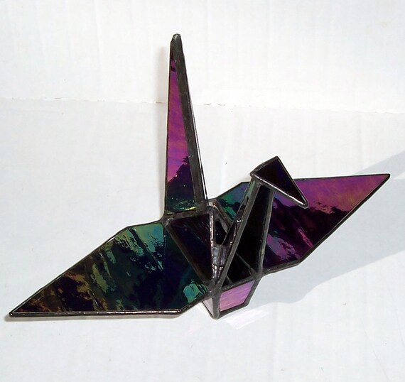 Iridescent Stained Glass Origami Sadako S Peace Crane Etsy